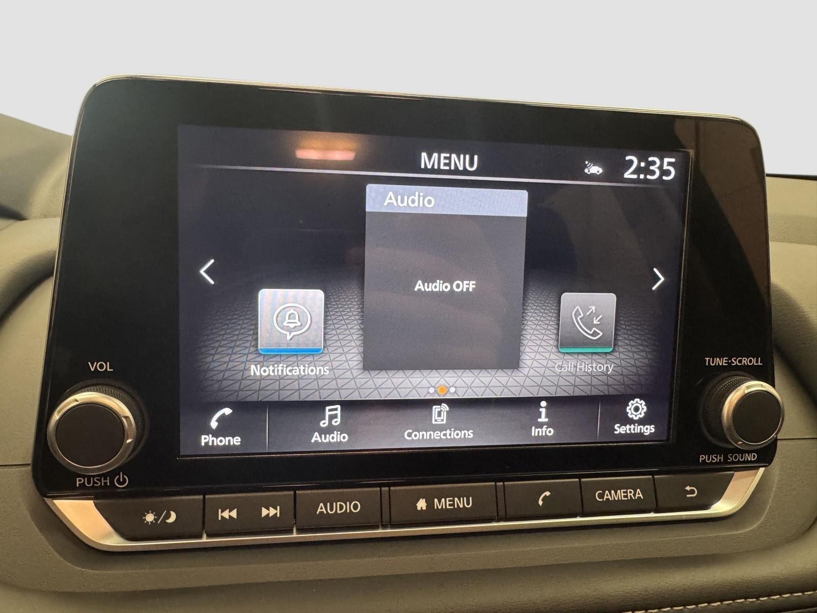 - Radio: AM/FM NissanConnect -inc: 6 speakers plus 2 tweeters, Apple CarPlay, Android Auto, 8" color touch screen display, Bluetooth®, 2 front USB type-C, Wi-Fi hotspot and NissanConnect Services powered by SiriusXM