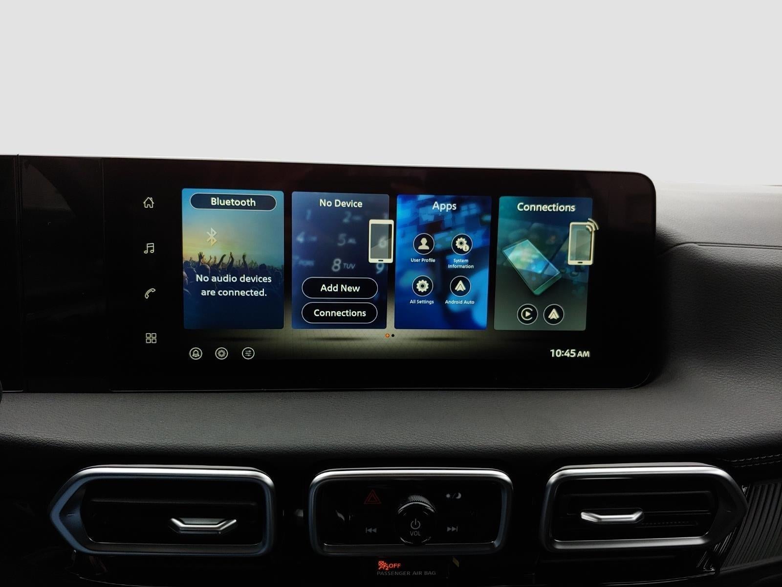 - Radio: AM/FM w/RDS/MP3 -inc: 4 speakers, 12.3" NissanConnect multimedia center display, Bluetooth® hands-free phone system, streaming audio via Bluetooth®, hands-free text messaging assistant, Siri Eyes Free, Google Assistant voice recognition, Apple CarPlay, Android Auto and (2) front USB connection port (type C)